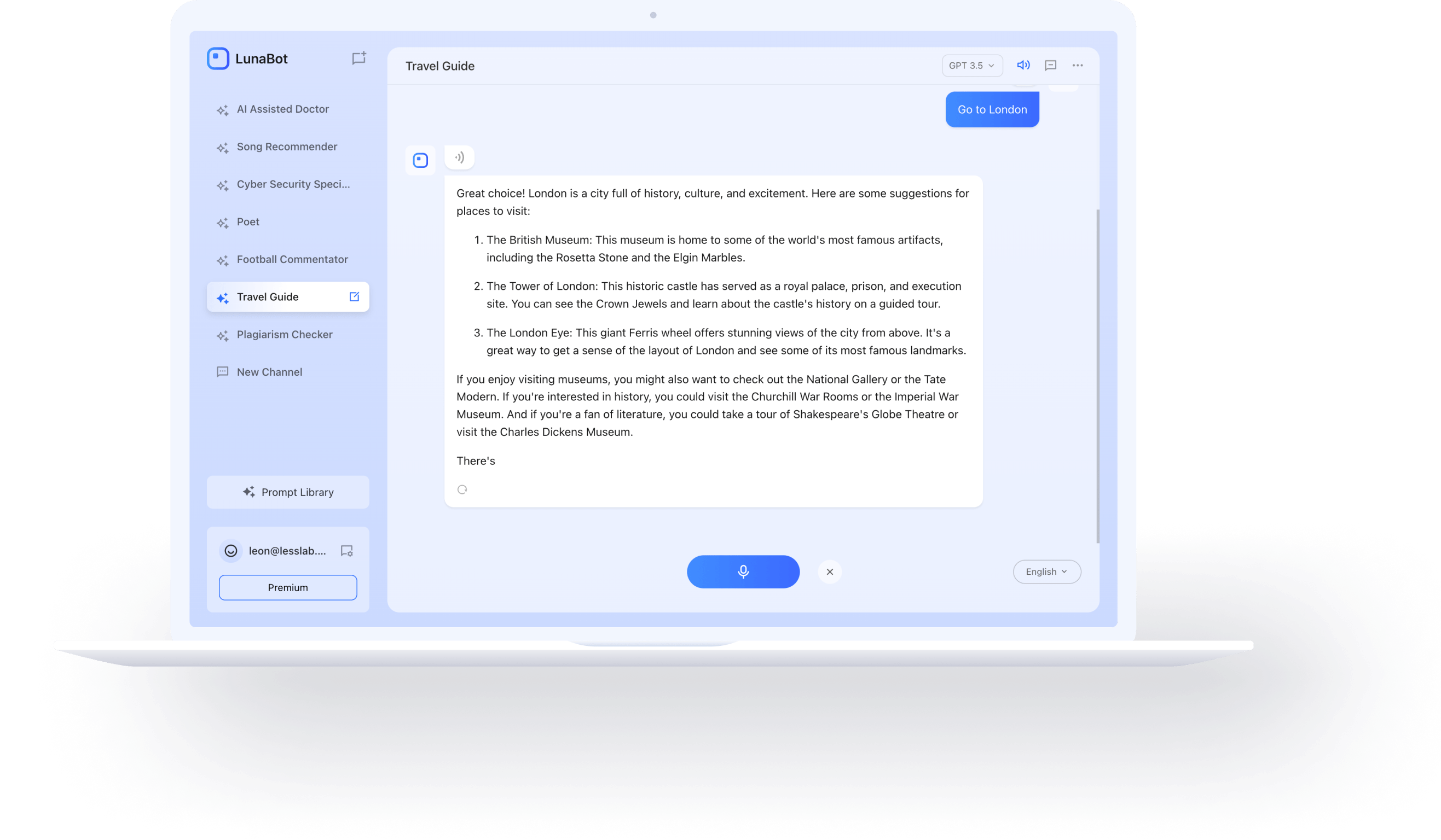 Lunabot 提供了一个平台让用户上传 PDF,还整合了 ChatGPT 的技术,帮助用户更深入地分析和解读文件内容。以下是一个简单的指南,展示如何使用这些功能。完全可以替代 ChatPDF 和 ChatDOC 的功能。