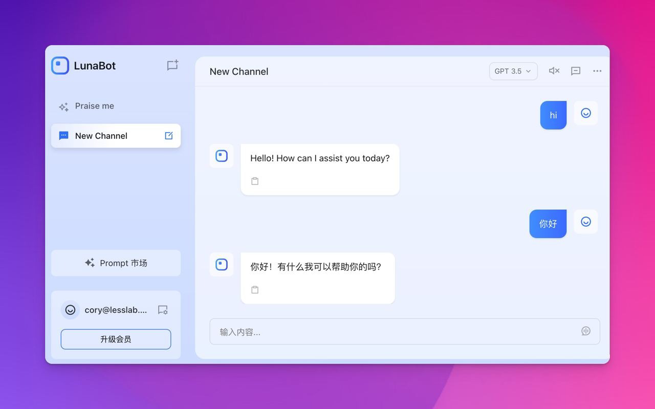 通过Lunabot的网页版,您可以自由选择3.5和4模型进行聊天,并随时切换。这意味着您可以与Lunabot进行更个性化和更有趣的对话。