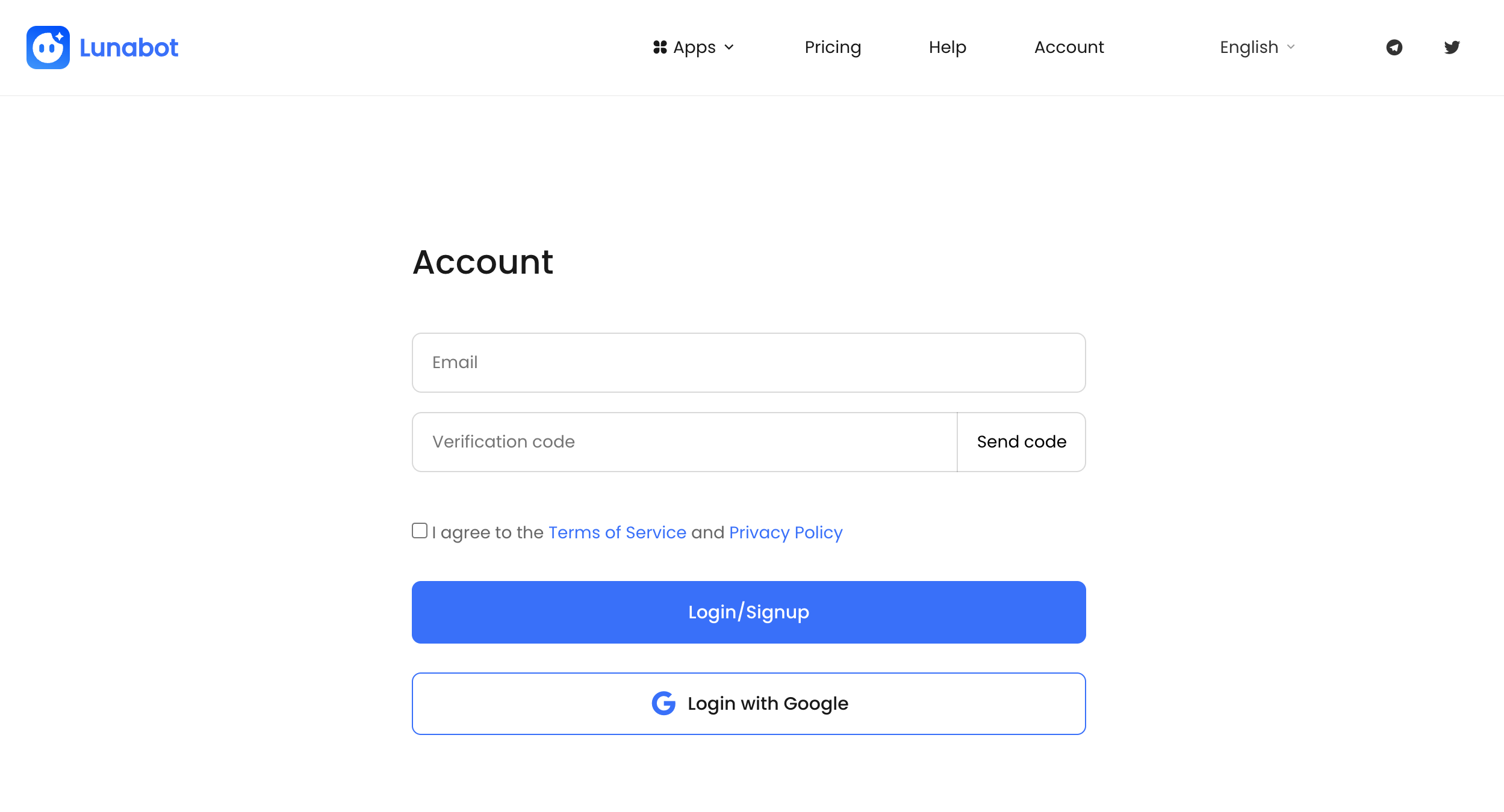 步骤 1: 打开 Lunabot.ai,并注册或登录您的账户。
